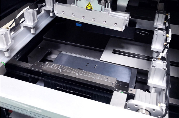 可拆卸,可编程的柔性侧夹装置,针对软板,弯曲变形的PCB,进行独特的顶部压平,通过软件编程可自动伸缩,不影响锡膏厚度。