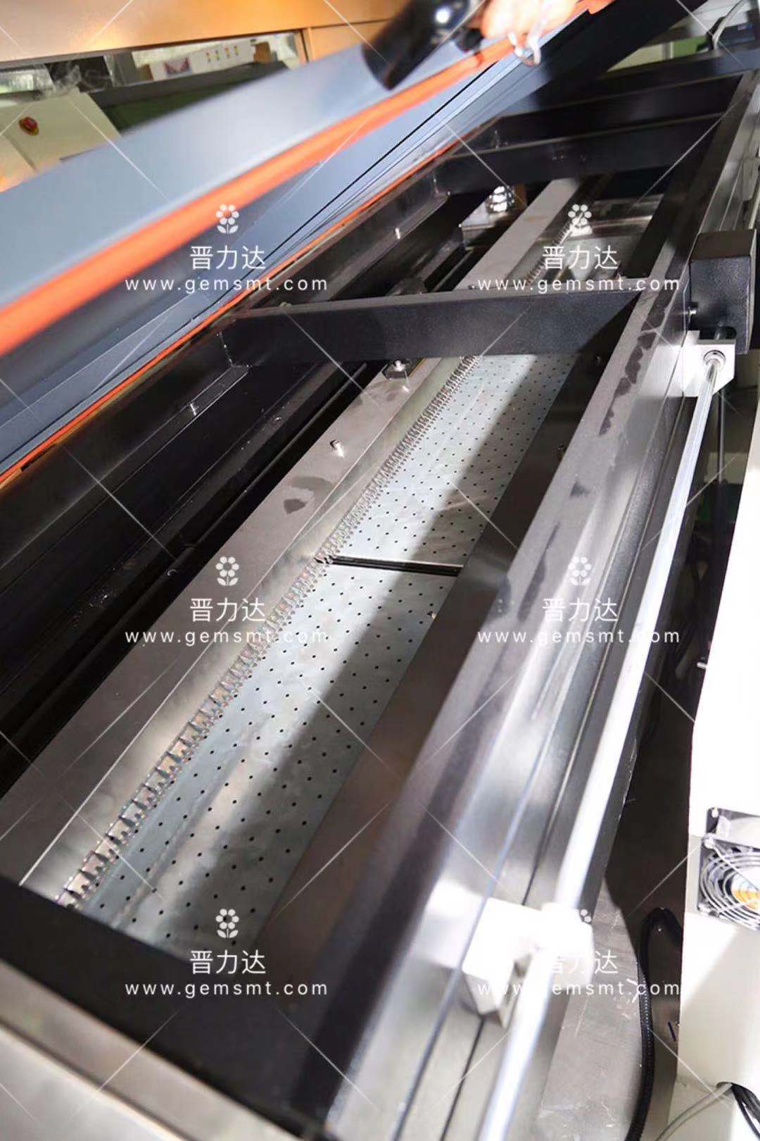 三段式预热系统,全长1800mm(可选配四段热风预热2米长)采用微循环热风强制预热PCB板,可对比大部分同行的预热结构提升30%产能,省电20%,产品焊接效果更亮更饱满,对于变压器,散热片,芯片等吸热元件尤为适用。