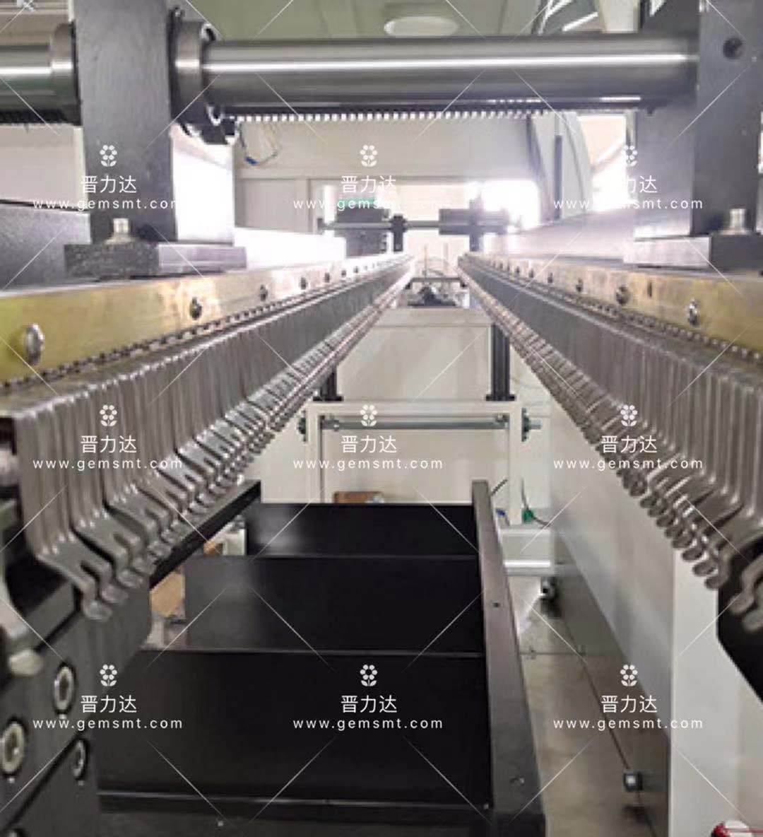 3、2011年3月份 江门金莱特电器股份有限公司购买我司15台型波峰焊,设备管理人员反馈钛下垂,经工程师上门了解后得知客户目前研发重型压器板15KG/块,长期生产导钛爪和钢扁磨损严重,我司了解后所有波峰焊由行业通用3MM不锈钢扁条改进为5MM加厚黄铜扁条,黄铜的特性是减少钛爪的摩擦和磨损,减少传动噪音。