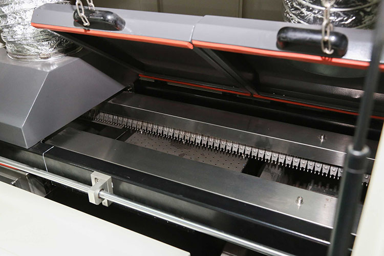 4、可选配中央支撑系统,不锈钢圆弧型托条,支撑位置和高度均可快速调节,防止线路板过重或拼板变形,防止过锡高温导致薄板变形。