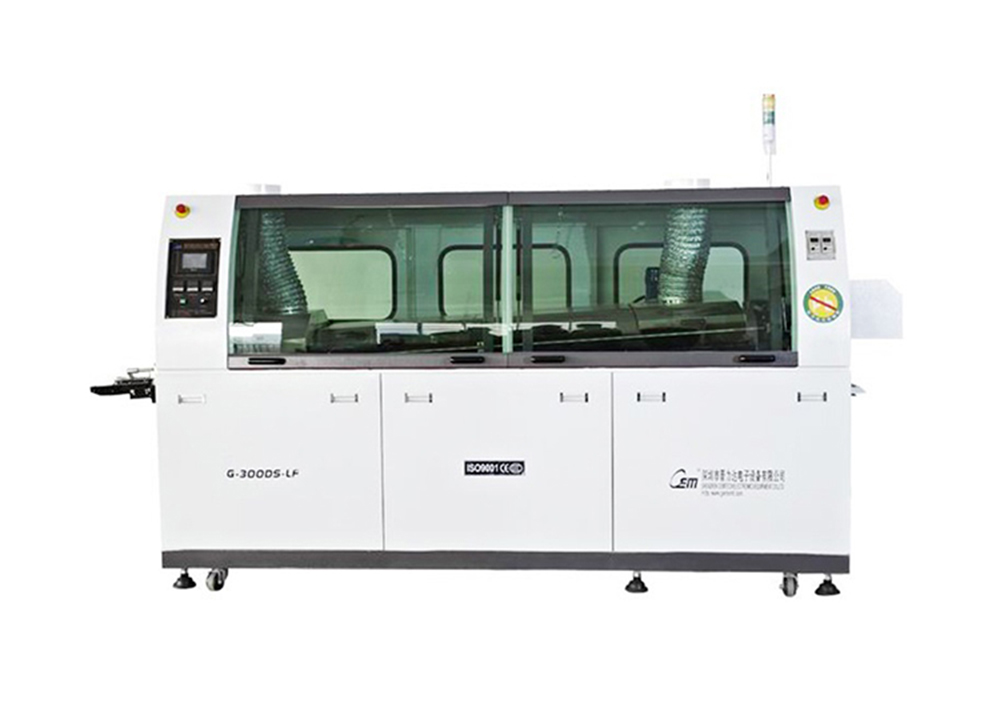 波峰焊机基本上是热辐射预热的。波峰焊常用的方法有强制热风对流、电热板对流、电热棒加热和红外线加热。在这些方法中,强制热风对流通常被认为是一种有效的波峰焊传热方法。电路板预热后焊接单波(λ波)或双波(湍流波和λ波)。对于穿孔部分,一个波就足够了。当电路板进入波形时,焊料流向与电路板相反,在元件引脚周围产生涡流。这是一种电刷,它可以去除电刷上所有的残留助焊剂和氧化膜,并在焊点达到润湿温度时形成润湿。