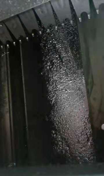 黑灰色粉末状正常锡渣                                                                       豆腐渣状异常锡渣
