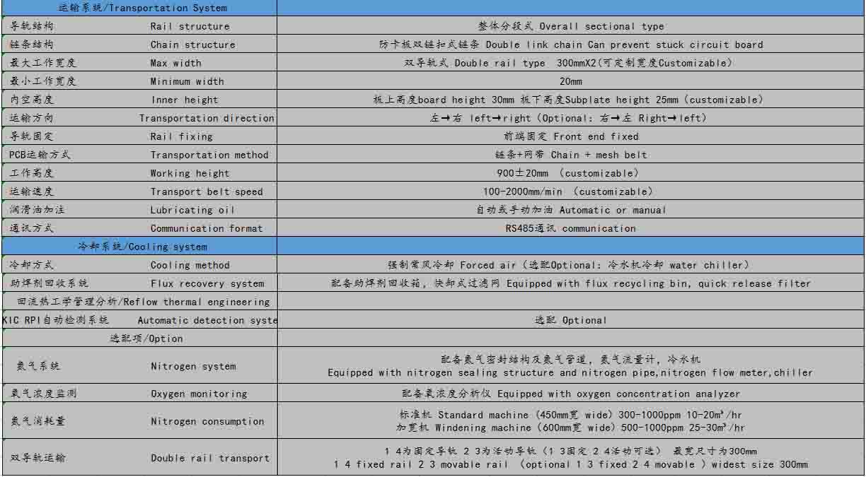 ● 独立控制的冷却系统,进口不锈钢制作,上下冷却对流,冷却后的曲线与焊接温度曲线成镜像,完全符合SMT国际认证标准